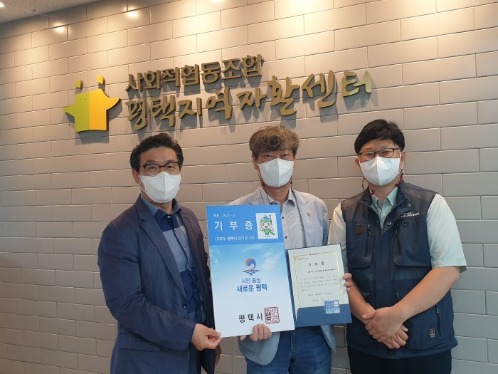 우리 본부에서는 사회적협동조합 평택지역자활센터 김양수 이사장님께 평택시 기부증을 전달하였습니다.