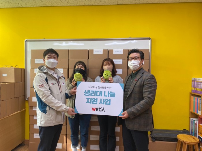 이날 전달식이 끝난 후 세계교육문화원 임직원과 평택행복나눔본부가 함께 학교밖지원센터 꿈드림에 방문해 물품을 전달하였습니다. 꿈드림에서는 여성용품키트가 필요한 학교 밖 여성 청소년에게 배분할 예정입니다.