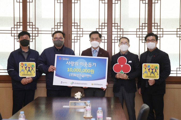 (주)화성건설이엔지, 사랑의 이웃돕기 성금 전달 페이지 정보 작성자 행복나눔 작성일21-12-31 14:13 조회119회 댓글0건 관련링크 이전글 다음글 목록 본문 일시 : 2021년 12월 22일 수요일 오전 9시 30분장소 : 평택시청 (주)화성건설이엔지에서 사랑의 이웃돕기 성금 10,000,000원을 전달하였습니다. 댓글목록 등록된 댓글이 없습니다. 이전글 다음글 목록