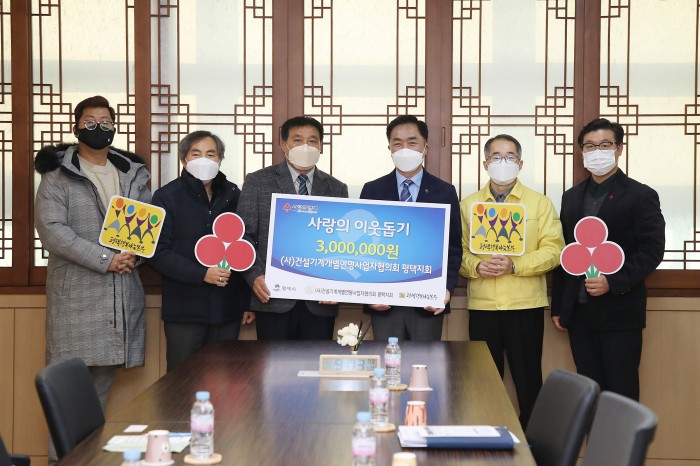 (사)건설기계개별연명사업자협의회 평택지회, 사랑의 이웃돕기 성금 전달 페이지 정보 작성자 행복나눔 작성일21-12-31 14:17 조회131회 댓글0건 관련링크 이전글 다음글 목록 본문 일시 : 2021년 12월 23일 목요일 오전 9시장소 : 평택시청 (사)건설기계개별연명사업자협의회 평택지회에서 사랑의 이웃돕기 성금 3,000,000원을 전달하였습니다. 댓글목록 등록된 댓글이 없습니다. 이전글 다음글 목록