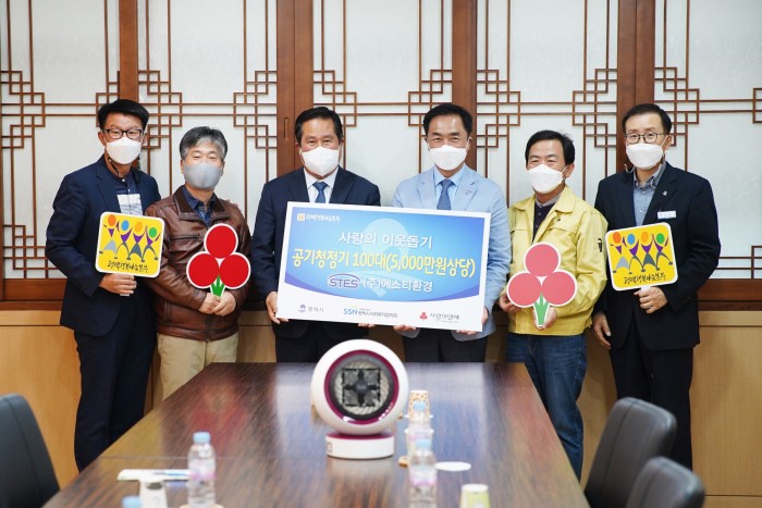 (주)에스티환경, 사랑의 이웃돕기 공기청정기 전달