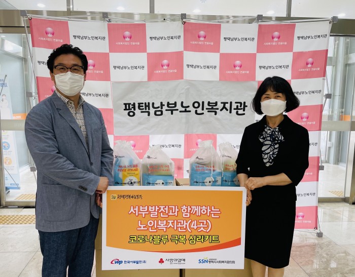 내용 : 평택행복나눔본부에서는 평택남부노인복지관(관장 고은자)에 17일 코로나 심리 키트를 전달하였다. 키트는 어르신 가정에 전달되어 어르신들의 여가 생활에 사용될 예정이다. 또 한국알박에서 식료품이 들어있는 행복 꾸러미를 전달하였고, 저소득 어르신들에게 전달되어 식사 지원할 예정이다.