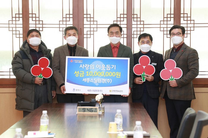 세종스틸환경(주), 사랑의 이웃돕기 성금 전달 페이지 정보 작성자 행복나눔 작성일21-01-05 10:35 조회476회 댓글0건 관련링크 이전글 다음글 목록 본문 일시 : 2020년 12월 17일(목) 09:30장소 : 평택시청 2층 대외협력실내용 : 세종스틸환경(주)에서는 17일 평택시에 사랑의 이웃돕기 성금 천만원을 전달하였다. 성금은 지역사회 어려운 이웃을 위해 소중히 사용될 예정이다. 댓글목록 등록된 댓글이 없습니다. 이전글 다음글 목록