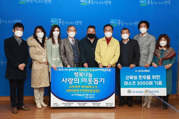 (주)아이앤글로벌, 코로나19 방역물품 전달 페이지 정보 작성자 행복나눔 작성일21-01-05 11:18 조회510회 댓글0건 관련링크 이전글 다음글 목록 본문 일시 : 2020년 12월 22일(화) 15:30장소 : 평택시청 종합상황실내용 : (주)아이앤글로벌에서는 22일 평택시에 코로나19 예방 및 확산방지를 위한 마스크 4만5천장(2천만원 상당)을 기부하였다. 댓글목록 등록된 댓글이 없습니다. 이전글 다음글 목록