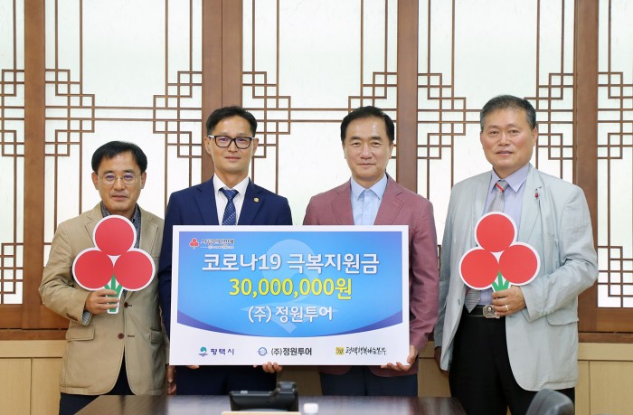 (주)정원투어, 코로나19 극복 지원금 전달 페이지 정보 작성자 행복나눔 작성일20-06-02 14:03 조회580회 댓글0건 관련링크 이전글 다음글 목록 본문 일시 : 2020년 06월 02일(화) 10:30장소 : 평택시청 2층 대외협력실내용 : 코로나19 극복을 위한 도움의 손길이 이어지는 가운데, (주)정원투어에서는 코로나19 예방 및 극복을 위한 지원금 3,000만원을 기부하였다. 댓글목록 등록된 댓글이 없습니다. 이전글 다음글 목록
