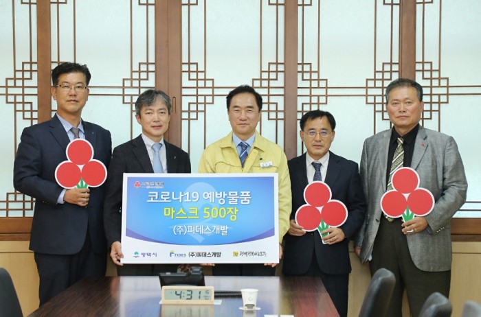 (주)피데스개발, 코로나19 예방 물품 전달 페이지 정보 작성자 행복나눔 작성일20-04-21 17:32 조회580회 댓글0건 관련링크 이전글 다음글 목록 본문 일시 : 2020년 04월 21일(화) 16:30장소 : 평택시청 2층 대외협력실 내용 : 코로나19 극복을 위한 도움의 손길이 이어지는 가운데 (주)피데스개발에서 코로나19 예방을 위한 마스크 500장을 기부하였다. 댓글목록 등록된 댓글이 없습니다. 이전글 다음글 목록