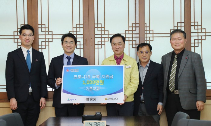 내 용 : 평택시 이충동에 위치한 기쁜교회(담임목사 류승빈)은 코로나19 극복 성금 1,000만원을 평택행복나눔본부에 기탁하였다. 기쁜교회는 사회적거리두기에 동참하여 온라인 예배를 드리고 있으며 코로나로 고통받은 저소득 소외계층에게 도움이 되기를 희망하였다.