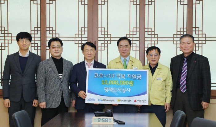 평택도시공사, 코로나19 극복 지원금 전달식 페이지 정보 작성자 행복나눔 작성일20-04-02 11:37 조회557회 댓글0건 관련링크 이전글 다음글 목록 본문 일시 : 2020년 04월 01일(수) 10:00장소 : 평택시청 2층 대외협력실내용 : 평택도시공사에서는 지난 1일 코로나19 예방 및 극복을 위한 지원금 1,000만원을 전달하였다.성금은 코로나19로 인해 어려움을 겪고 있는 취약계층을 위해 사용될 예정이다. 댓글목록 등록된 댓글이 없습니다. 이전글 다음글 목록