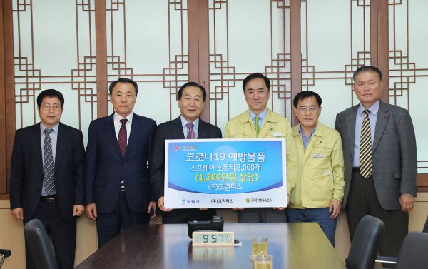 (주)크린피스, 코로나19 극복 지원 물품 전달식 페이지 정보 작성자 행복나눔 작성일20-04-03 18:16 조회635회 댓글0건 관련링크 이전글 다음글 목록 본문 일시 : 2020년 03월 27일(금) 10:00장소 : 평택시청 2층 대외협력실내용 : 코로나19 극복을 위한 도움의 손길이 이어지는 가운데 (주)크린피스가 지난 27일 코로나 예방을 위한 스프레이 소독제 2,000개를 기부하였다. 댓글목록 등록된 댓글이 없습니다. 이전글 다음글 목록