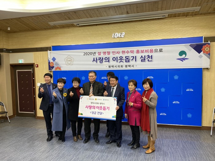 평택시의회 설명절 사랑의 이웃돕기 성금전달식 페이지 정보 작성자 행복나눔 작성일20-01-21 14:25 조회756회 댓글0건 관련링크 이전글 다음글 목록 본문 일시 : 2020년 1월 21일(금) 10:00장소 : 평택시의회 회의실내용 : 평택시의회에서는 올해도 현수막 비용을 절감하여 평택시 취약계층의 따뜻한 설명절을 위하여 평택행복나눔본부에 전달하셨다. 댓글목록 등록된 댓글이 없습니다. 이전글 다음글 목록