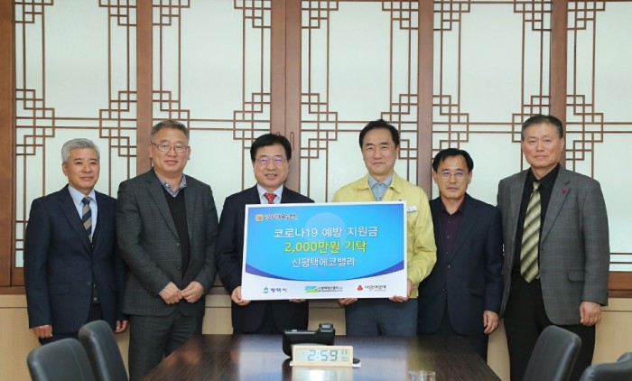 내 용 : 개발업체 신평택에코밸리는 신종코로나바이러스 감염증(코로나19)예방을 위해 성금 2천만원을 평택행복나눔본부에 전달했다.