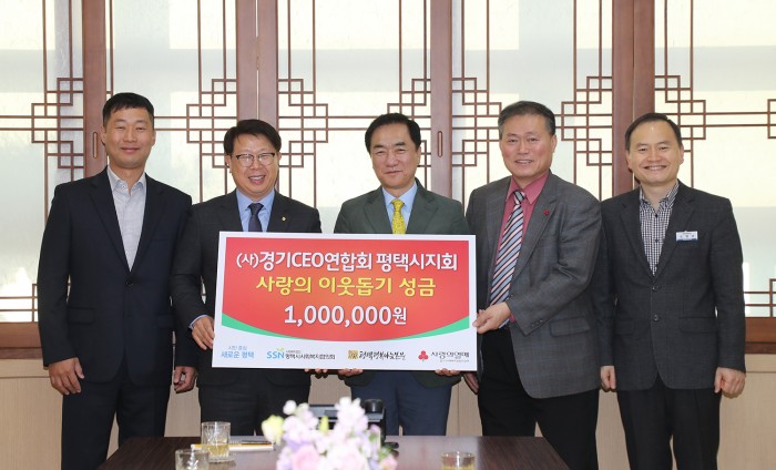 (사)경기CEO연합회 평택시지회 이웃돕기 성금전달 페이지 정보 작성자 행복나눔 작성일20-01-13 20:24 조회562회 댓글0건 관련링크 이전글 다음글 목록 본문 일시 : 2019년 12월 19일(목) 10:30 장소 : 평택시청 2층 대외협력실 내용 : (사)경기CEO연합회 평택시지회(회장 최영남) 동절기 어려움을 겪는 평택시 어려운 이웃을 위해 1,000,000원의 성금을 전달하셨다. 댓글목록 등록된 댓글이 없습니다. 이전글 다음글 목록