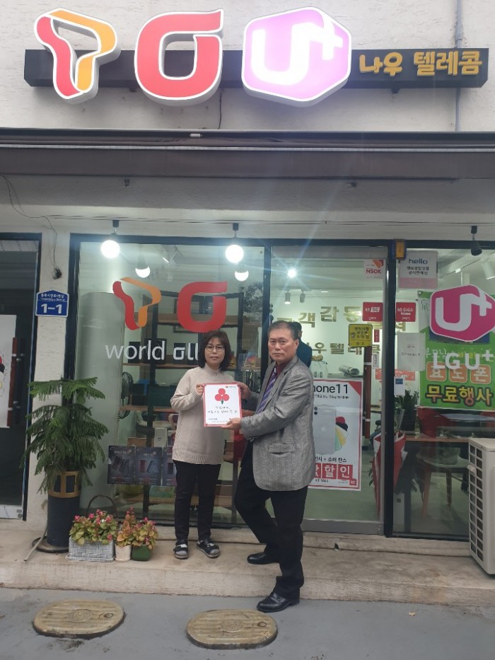 나우텔레콤 착한가게 현판 전달 페이지 정보 작성자 행복나눔 작성일19-11-26 16:09 조회683회 댓글0건 관련링크 이전글 다음글 목록 본문 일시 : 2019년 11월 13일(수) 10:30 장소 : 나우텔레콤내용 : 나우텔레콤(대표 주인숙)은 통복시장에 위치한 핸드폰 이동통신 및 인터넷 등 가입하는 통신업체로 통복시장의 다른 사업장도 착한가게에 참할 수 있도록 함께해주실 것을 약속하셨다. 댓글목록 등록된 댓글이 없습니다. 이전글 다음글 목록