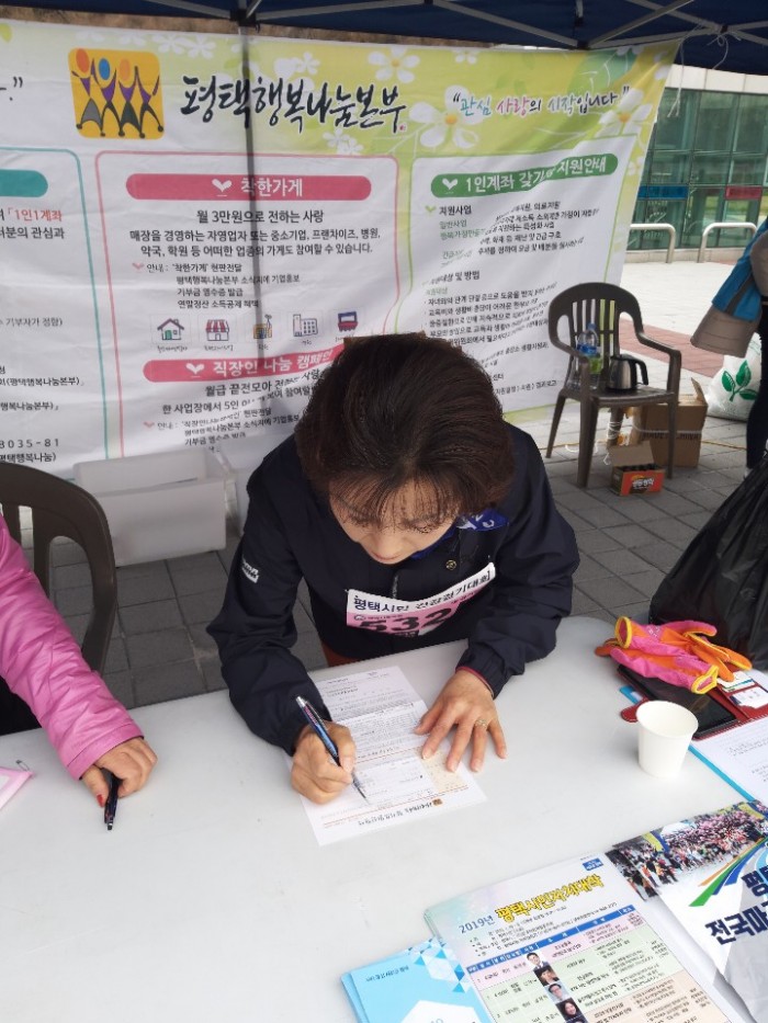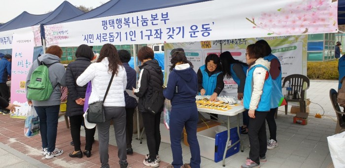 내용 : 평택행복나눔본부는 2019평택시민건강걷기대에 홍보 및 체험 부스를 설치하여
