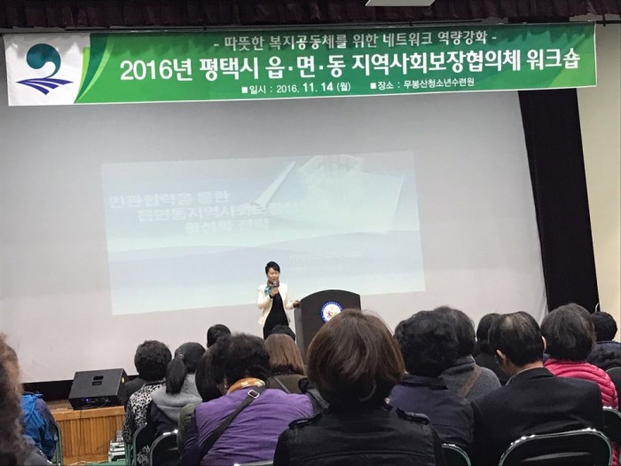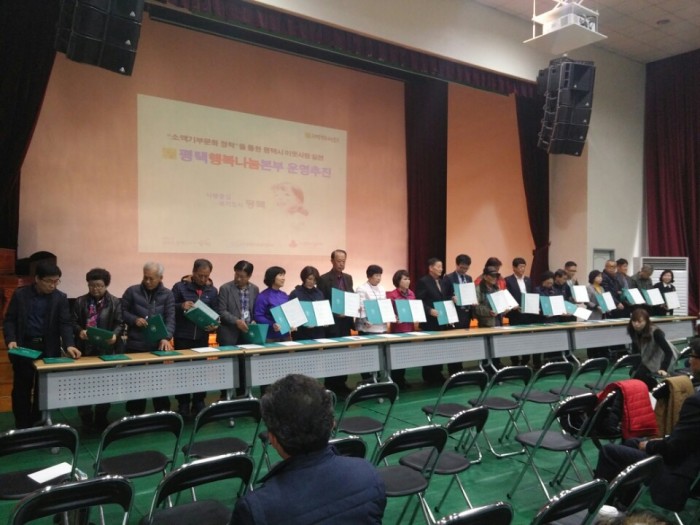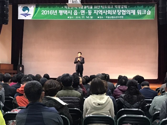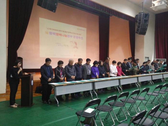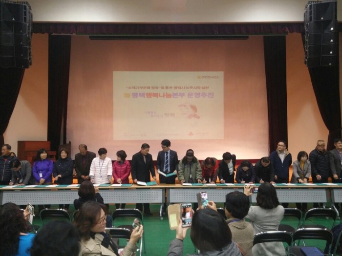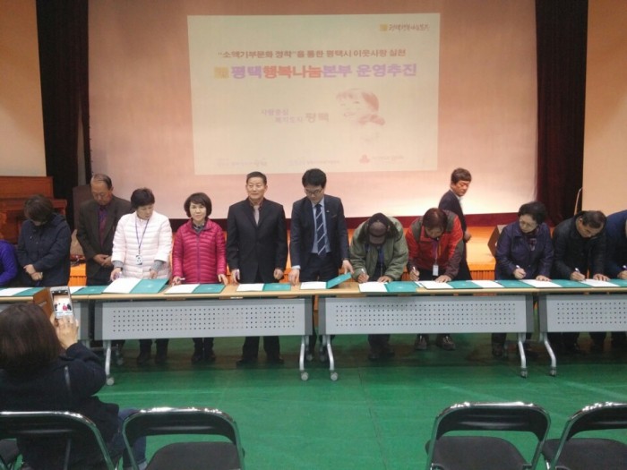 2016 평택시 읍면동 지역사회보장협의체 워크숍에서 평택행복나눔본와 협약 체결식을 갖고 평택행복나눔본부