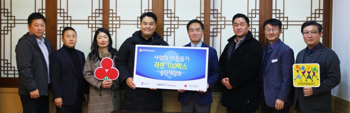 241129 송탄애향회 전달식 페이지 정보 작성자 행복나눔 작성일25-05-22 11:22 조회53회 댓글0건 관련링크 이전글 다음글 목록 본문 일자 : 2024년 11월 29일(금)장소 : 평택시청 대외협력실 송탄애향회에서 라면 100박스를 전달해주셨습니다. 댓글목록 등록된 댓글이 없습니다. 이전글 다음글 목록