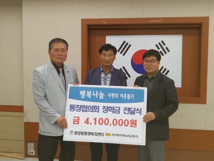 이번 장학금은 평소 마을을 위해 봉사하는 통장들의 기부로 모아진 성금으로 작년에 이어 올해도 희망을 잃지 않고 학업에 정진하는 학생들에게 지원될 예정이다.