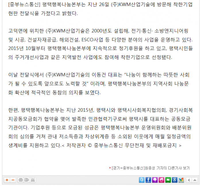 평택시민을 위해 나눔을 실천하는 착한가게 현판 전달 페이지 정보 행복나눔 작성일17-07-05 09:17 조회3,407회 댓글0건 관련링크 http://www.jungbunews.com/news/articleView.html?idxno=109424 2188회 연결 이전글 다음글 목록 본문 댓글목록 등록된 댓글이 없습니다. 이전글 다음글 목록