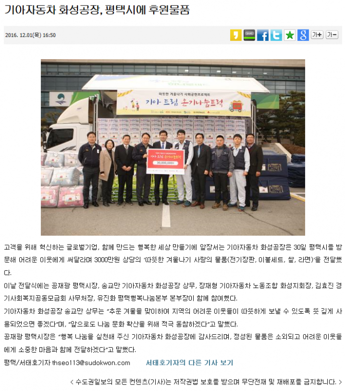 기아자동차 화성공장, 평택시에 후원물품 페이지 정보 행복나눔 작성일16-12-07 10:04 조회3,967회 댓글0건 관련링크 http://www.sudokwon.com/read.php3?aid=1480578635334085007 1909회 연결 이전글 다음글 목록 본문 댓글목록 등록된 댓글이 없습니다. 이전글 다음글 목록