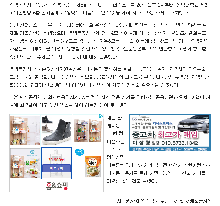 평택복지재단, 평택나눔컨퍼런스 성료 페이지 정보 행복나눔 작성일16-11-10 16:48 조회4,003회 댓글0건 관련링크 http://www.1gan.co.kr/news/articleView.html?idxno=98123 2242회 연결 이전글 다음글 목록 본문 댓글목록 등록된 댓글이 없습니다. 이전글 다음글 목록