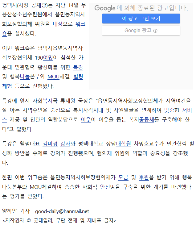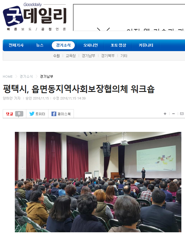 평택시, 읍면동지역사회보장협의체 워크숍 페이지 정보 행복나눔 작성일16-11-17 16:27 조회3,919회 댓글0건 관련링크 http://www.gooddailynews.co.kr/news/articleView.html?idxno=101063 2103회 연결 이전글 다음글 목록 본문 댓글목록 등록된 댓글이 없습니다. 이전글 다음글 목록