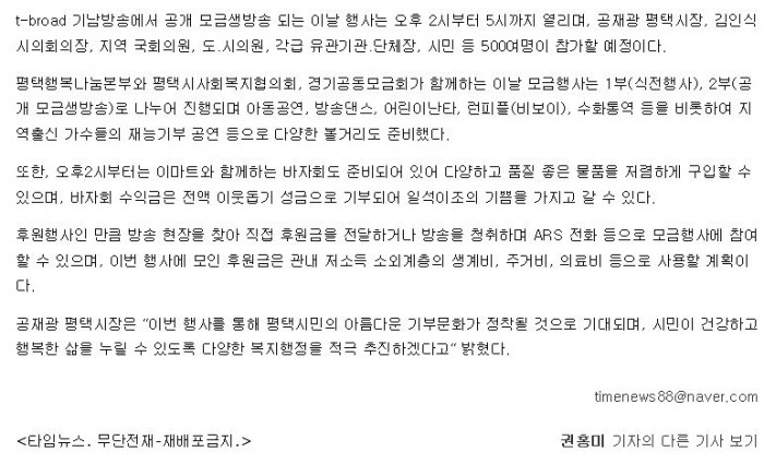 평택시,‘희망 2016 공개 모금생방송 나눔캠페인’축제 개최 페이지 정보 행복나눔 작성일16-06-08 11:09 조회4,699회 댓글0건 관련링크 http://www.timenews.co.kr/web/news/article/1058569 2653회 연결 이전글 다음글 목록 본문 댓글목록 등록된 댓글이 없습니다. 이전글 다음글 목록