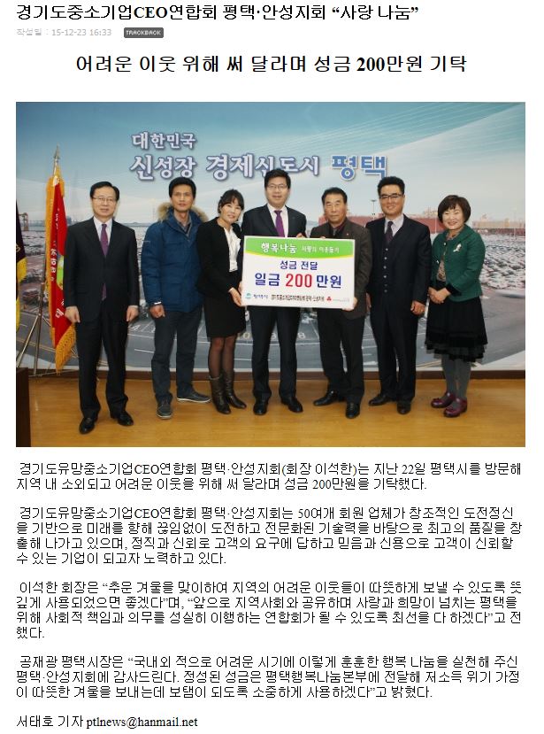 경기도중소기업CEO연합회 평택안성지회 "사랑나눔" 페이지 정보 행복나눔 작성일16-02-24 17:31 조회4,617회 댓글0건 이전글 다음글 목록 본문 댓글목록 등록된 댓글이 없습니다. 이전글 다음글 목록
