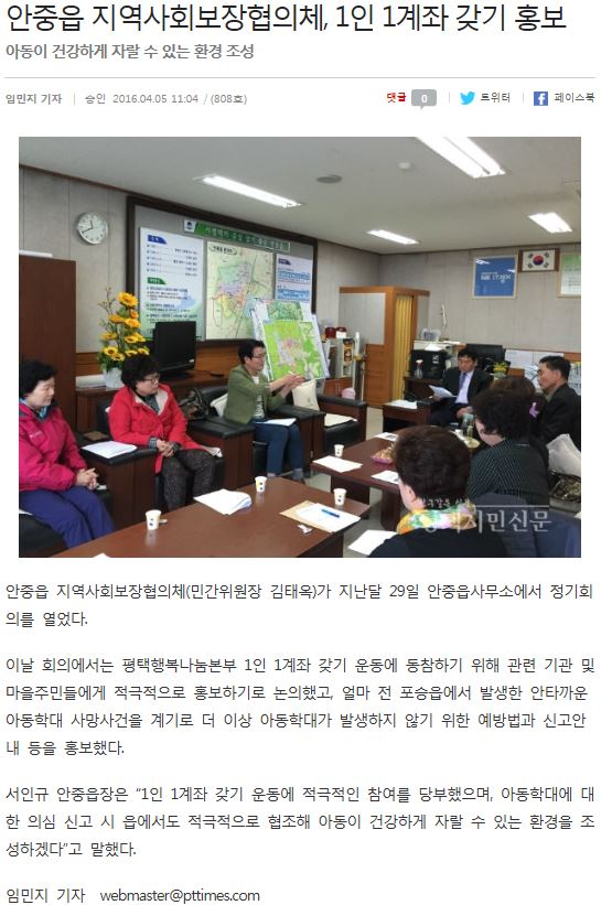 안중읍 지역사회보장협의체, 1인 1계좌 갖기 홍보 페이지 정보 행복나눔 작성일16-04-07 10:25 조회4,534회 댓글0건 관련링크 http://www.pttimes.com/news/articleView.html?idxno=37819 1961회 연결 이전글 다음글 목록 본문 댓글목록 등록된 댓글이 없습니다. 이전글 다음글 목록
