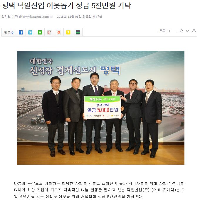 평택 덕일산업 이웃돕기 성금 5천만원 기탁 페이지 정보 행복나눔 작성일15-12-22 15:30 조회4,880회 댓글0건 이전글 다음글 목록 본문 댓글목록 등록된 댓글이 없습니다. 이전글 다음글 목록