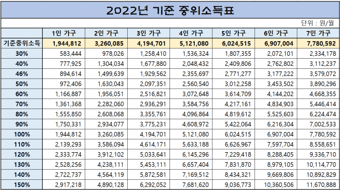 * 중위소득확인서류 - 건강보험납부확인서 3개월분(중위소득기준표 참고)